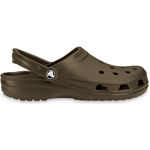 Crocs Mens Classic Unisex Croslite Breathable Strap Beach Clog Brown Crocs Classic Keeps Your Feet Comfortable All Day Crocs Classic Is A Lightweight Clog Choice For Men And Women. The Ergonomic, Italian Design Of These Shoes Allows Your Foot To Bend Easily And Expand Naturally For Maximum Comfort. Like Crocs Original Clogs, These Easy-On Easy-Off Casual Clogs Are Roomy. But Crocs Classic Clogs Fit A Bit More Snugly Not As Much Wiggle In Your Walk. Crocs Exclusive Croslite Material Makes The Cushy Comfort Of These Beach Clogs Possible. Beach And Water-Friendly Features Of Crocs Classic Include Ventilation On Top And Around The Toebox To Drain Away Water And Debris. The Croslite Footbed Moulds To Your Foot For A Custom Fit With Excellent Arch Support. Croslite Material Offers The Added Benefits Of Being Odour Resistant Making Crocs Classic Great As Water Shoes. Take The Plunge! Buy A Pair Of Crocs Classic, The Perfect Shoe For Beach Or Boat.
