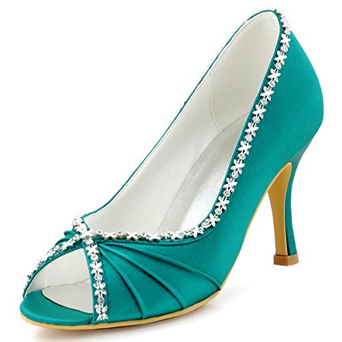 Best Seller! ElegantPark EP2094 Women Peep Toe Pumps Stiletto Heel Rhinestone Pleated Satin Prom Evening Party Shoes Teal UK 6 Review